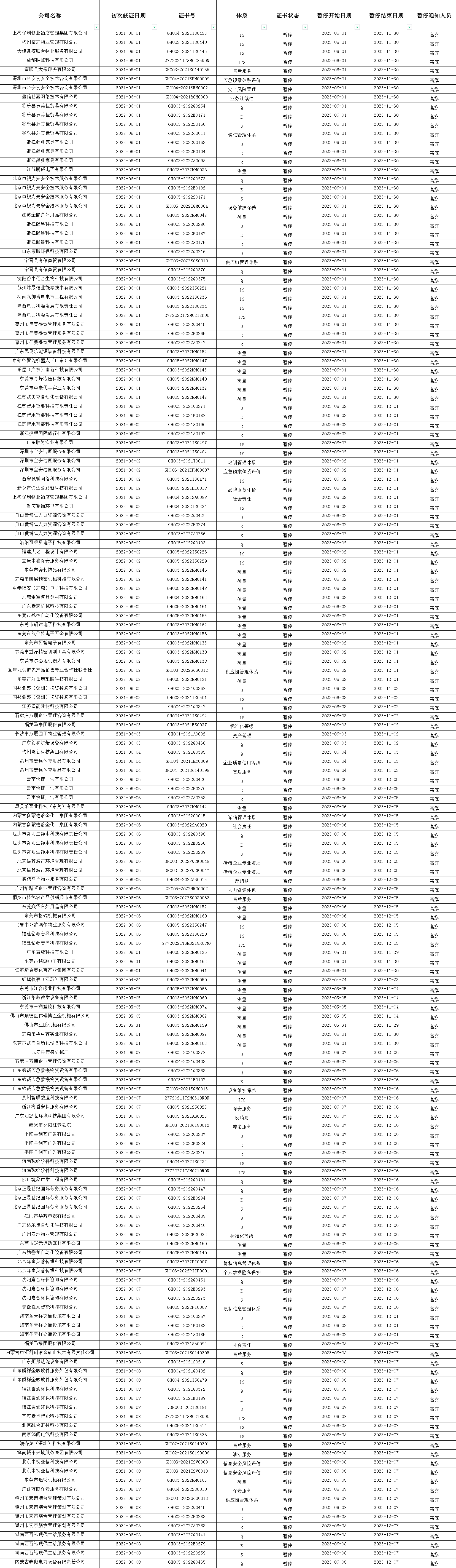 2023年6月暫停清單