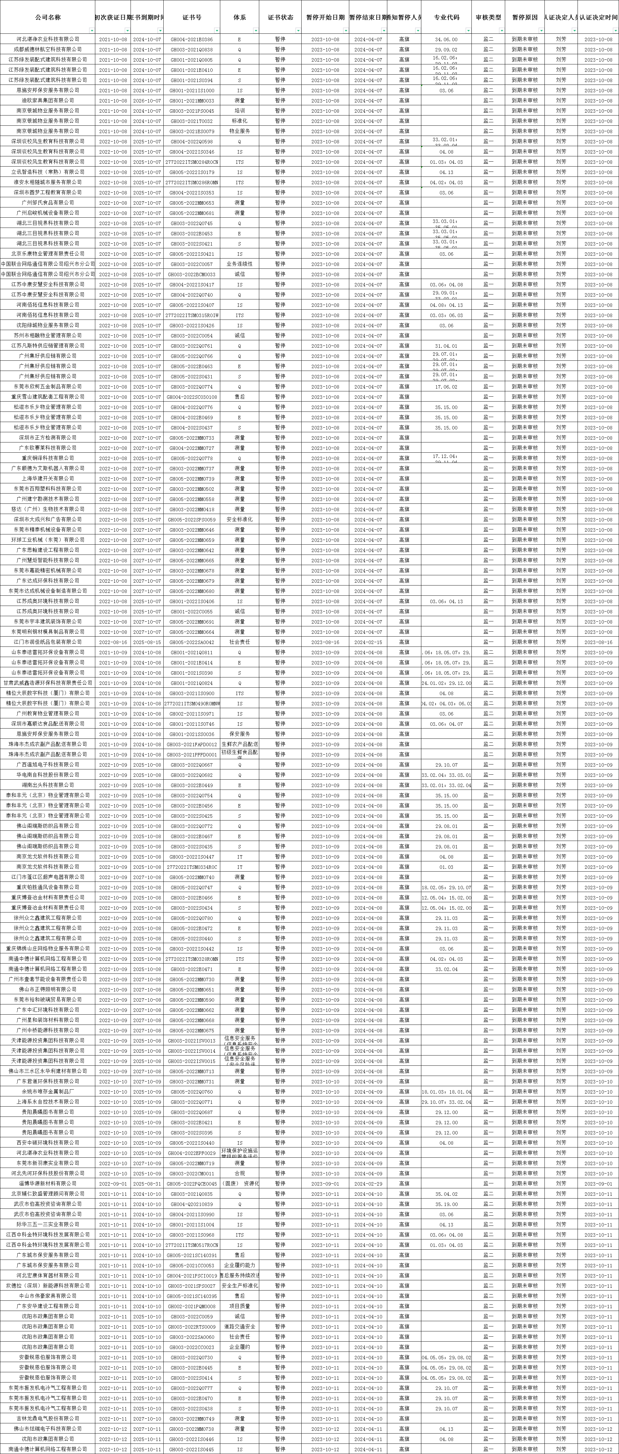 2023年10月暫停清單